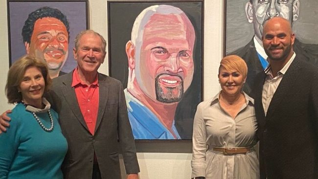 “Quiero enviar mi mayor aprecio y agradecimiento al Presidente George W. Bush por incluirme en su nuevo libro, #OutOfManyOne. El lunes 26 de abril de 2021, el Presidente me invitó a ver la pintura que creó y para reunirnos con él y la ex Primera Dama Laura Bush”.