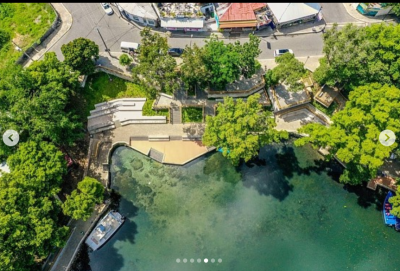 La misma comunica, mediante tres accesos, a las demás plazas que bordean el manantial, cuyas conexiones se realizan mediante escaleras y rampas de acceso universal.