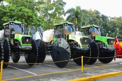También se entregaron seis tractores para labores agrícolas, dos mureadores compactadores para la formación de muros con capacidad de siembra, dos niveladoras multiláminas para el acondicionamiento del suelo con igualación variable, cuatro empacadoras de paja de arroz y cuatro alineadores de paja.