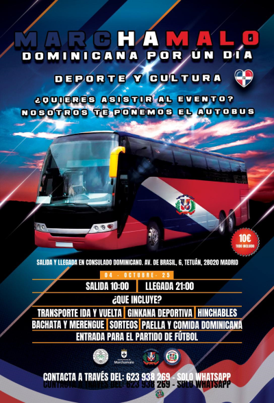 Se dispondrá de autobús desde el consulado dominicano por 10 euros, incluyendo traslado y comida. La salida será a las 10:00 horas con regreso aproximado a las 20:30. Las actividades son gratuitas, excepto la paella opcional por 3 euros.